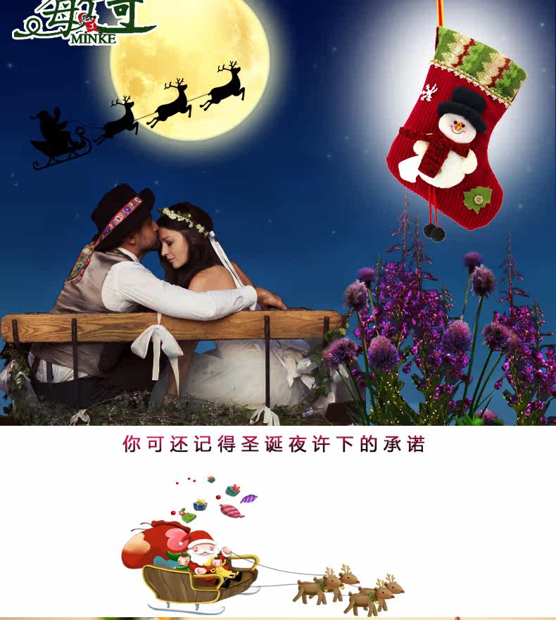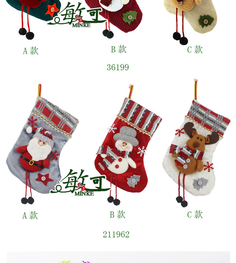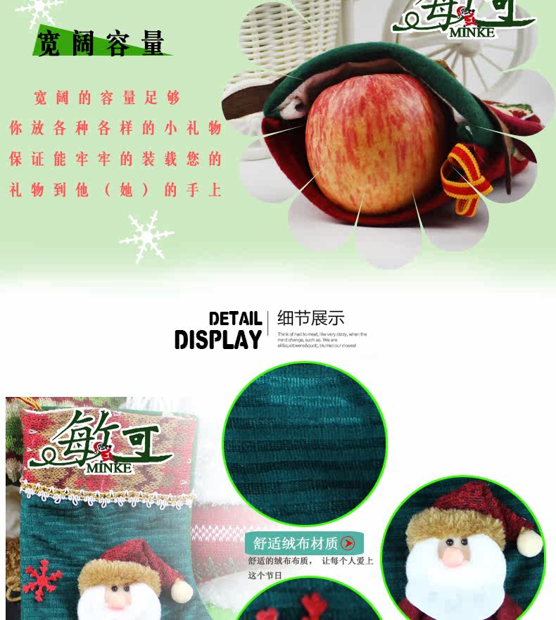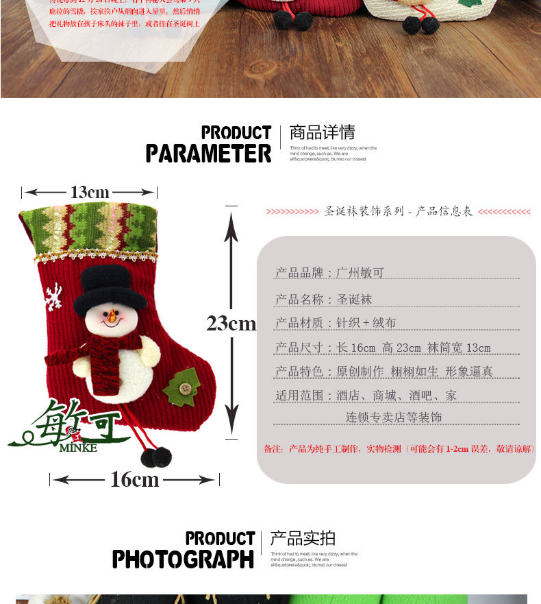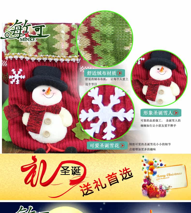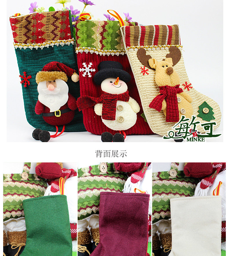 敏可 中号圣诞袜 针织袜子 圣诞老人平安夜礼物袋 卡通装饰品袜子