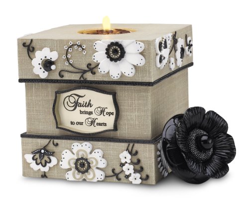 Modeles 88012, 5-Inch Square Tea Light Holder, Faith Sentiment