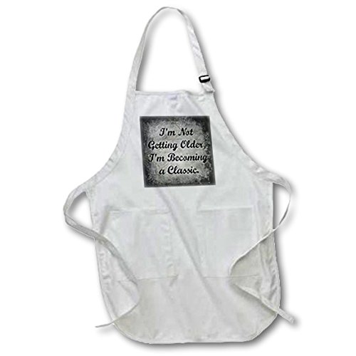 3dRose apr_201909_1 I'm Not Getting Older I'm Becoming a Classic Black Lettering Full Length Apron with Pockets, 22 by 30", White