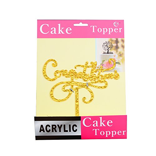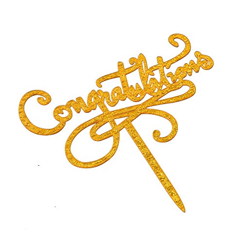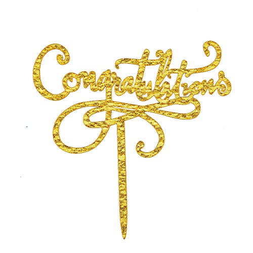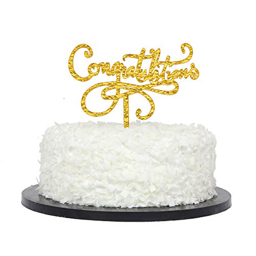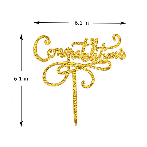 Congratulations Cake Topper, Gold Color Acrylic Cake Decoration for Graduation, Wedding, Job Promotion, Retirement Party