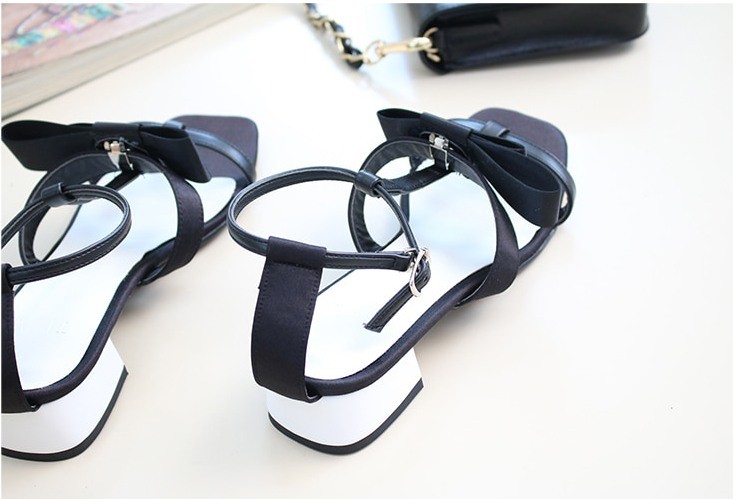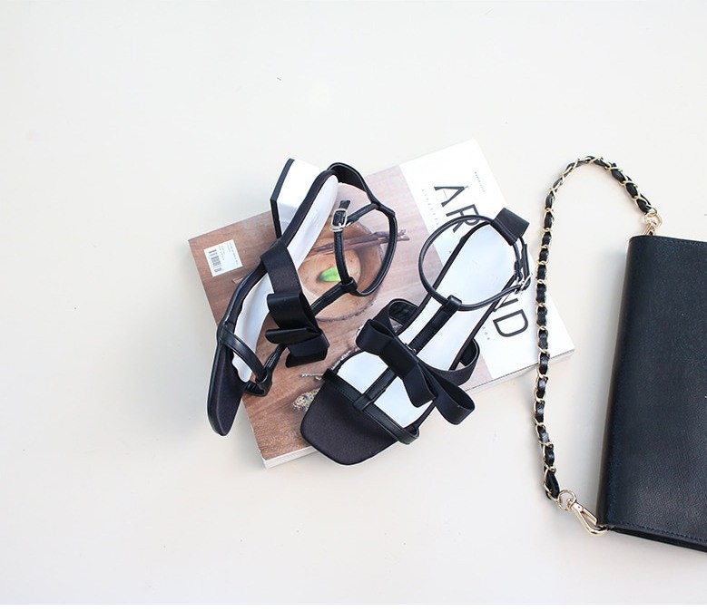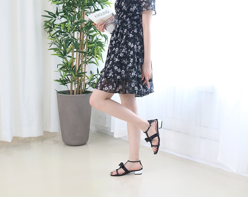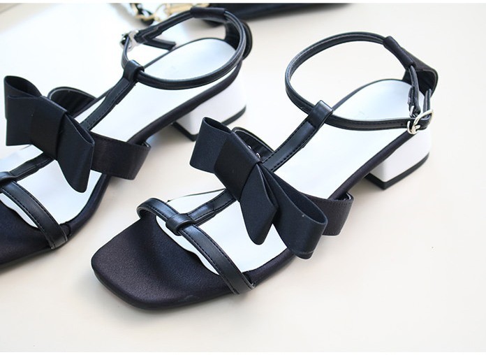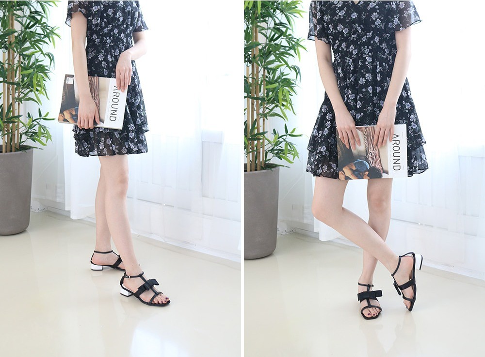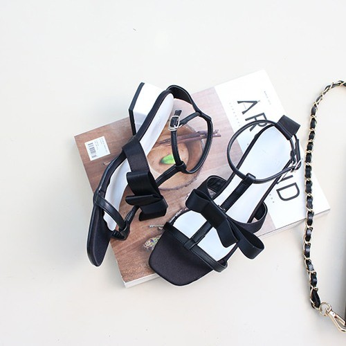 商品名:サンダル レディース ローヒール 太ヒール チャンキーヒール リボン 2018 春 ファッション 靴 婦人靴