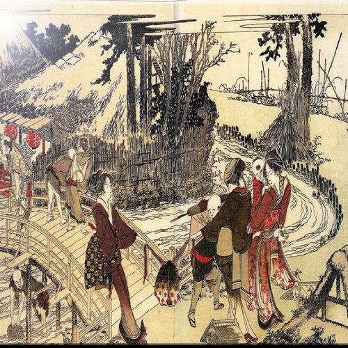 Rikki Knight RK-6intilec-3276 6" X 6" Katsushika Hokusai Art Village Near A Bridge Design Ceramic Art Tile
