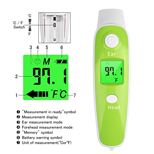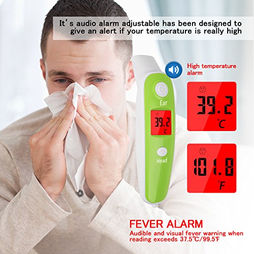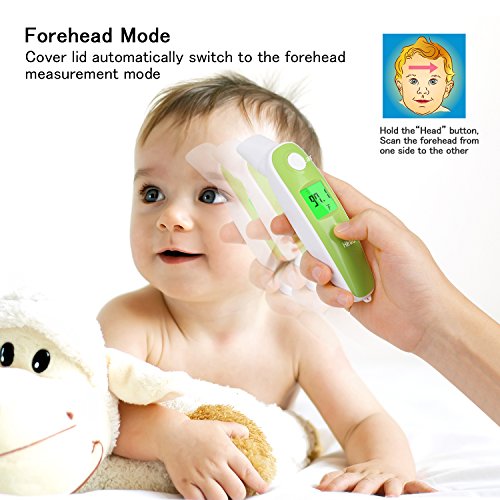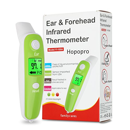 Studio : Hopopro Publisher : Hopopro Binding : Baby Product Product Description Why Choose our brand thermometer Every parent worries about the risk of high temperatures in babies and children, their elderly relatives and of course themselves. In order to accurately assess whether you or a member of your family has a temperature you will need to use a reliable thermometer that is simple to use and causes no discomfort. So how about if you had TWO IN ONE! Our thermometer for kids and adults provides an expedient, accurate and simple way to screen initial fever. It is used by simply getting the area surface temperature on the person's forehead. This infrared thermometer can get the reading of the body temperature with an accuracy of 0.2 Celsius in less than one second by a single click.