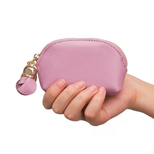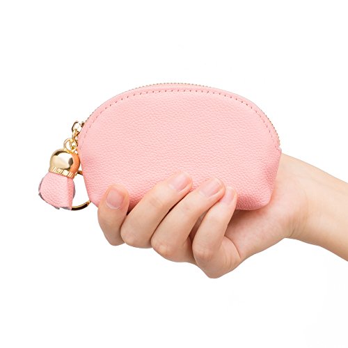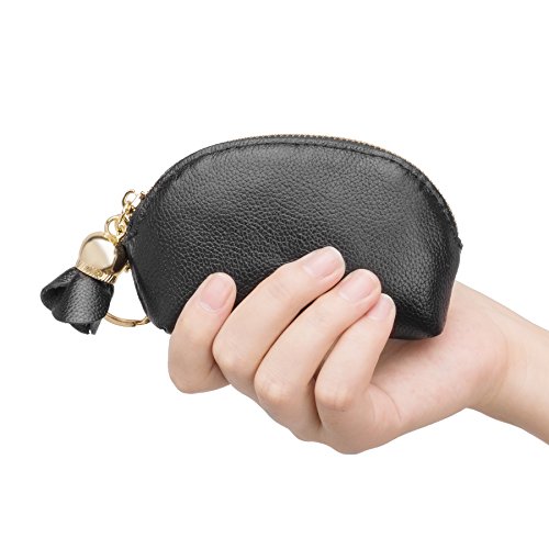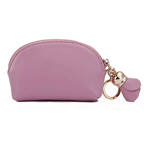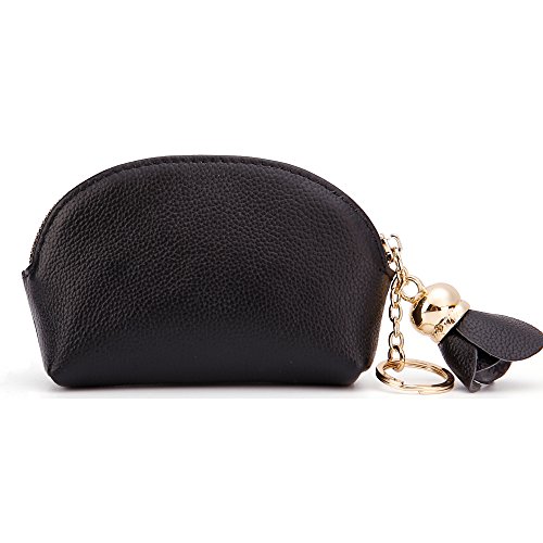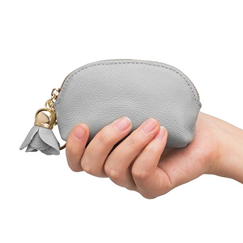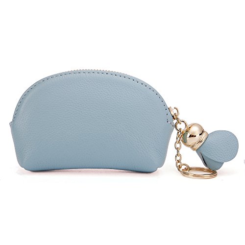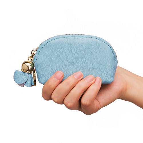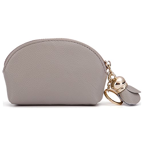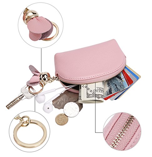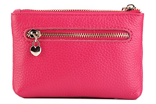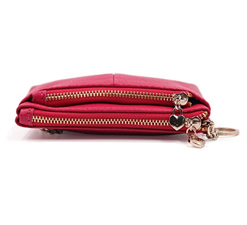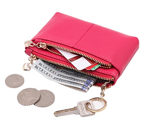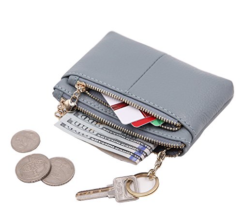 ZORESS Women Genuine Leather Zip Mini Coin Purse With Key Ring Triple Zipper Card Holder Wallet