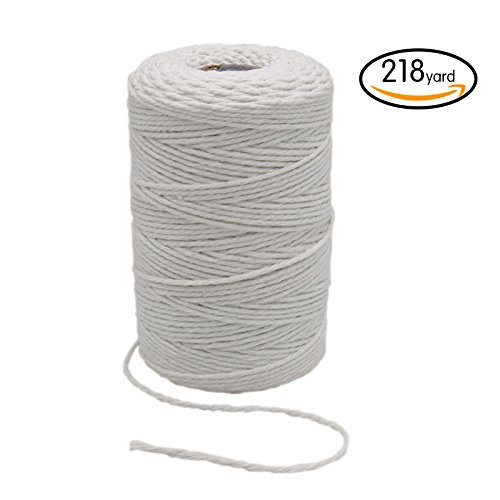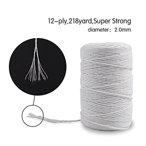 200M (218 Yard) 12-Ply Cotton Twine String,Cooking Kitchen Twine String Craft String Baker Twine for Tying Homemade Meat, Making Sausage, DIY Craft and Gardening Applications (White)