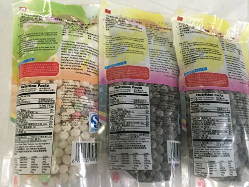 -. Feature : 2 packs of (BOBA Black Tapioca Pearl) Bubble, plus 1 Pack of (Color Pearl Bubble), With 1 Pack of 50 BOBA STRAW / Two Pack of - Black Tapioca Pearls, plus one pack of Color Tapioca Pearls bubble. / Make Your Own Bubble Tea! Net Wt. 8.8 Oz (250g) each, Pack free 1 pack of 50 BoBa Straw (Variety Color) / Perfect for the college student, military personnel, the office, birthdays, Halloween, Pinatas, holidays or any other special occasion. / Cook Ready in 5 Mins. Great for late night treat, break room or anywhere you need a quick snack.