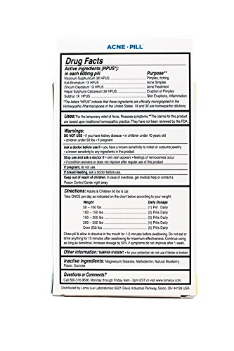 -. Brand : Loma Lux -. EAN : 6909463286775 -. Feature : Made with all organic ingrdients, free of nasty chemicals. / Look the way you want to feel, and feel the way you want to look. / Live fabulously and with confidence. -. Label : Loma Lux Laboratories -. Manufacturer : Loma Lux Laboratories -. MPN : 5359132 -. PackageQuantity : 1 -. PartNumber : 5359132 -. ProductGroup : Health and Beauty -. ProductTypeName : OUTDOOR_LIVING -. Publisher : Loma Lux Laboratories -. Studio : Loma Lux Laboratories -. Title : Loma Lux Laboratories Acne Pill - Chewable - Quick Dissolving - 60 Count -. UPC : 772195359132