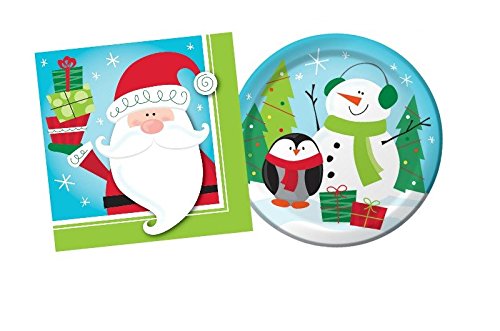 Santa and Friends Party Bundle: Includes Plates and Napkins for 8 Guests in a Frozen Friends Design