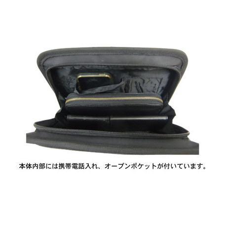 本体内部には携帯電話入れと小物などの収納に便利な