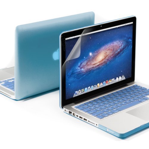 GMYLE 3 in 1 Matte Rubber Coated See-Thru Hard Case Cover for Aluminum Unibody 13.3-Inch Macbook Pro with Robin Egg Blue Silicon Keyboard Protector and 13-Inch Clear LCD Screen Protector