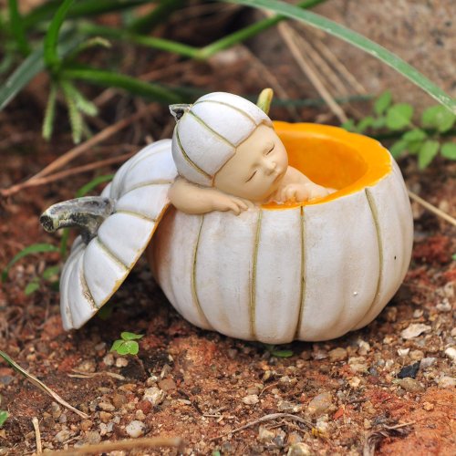 Top Collection Miniature Fairy Garden and Terrarium Sleeping Fairy Baby in White Pumpkin Statue