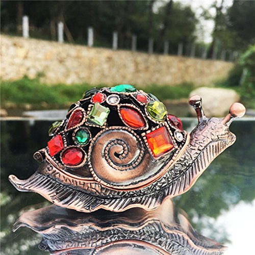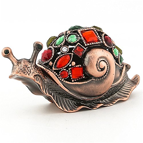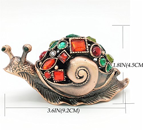 Waltz&F Bronze snail Figurine Collectible Hinged Trinket Box Bejeweled Hand-painted Ring Holder