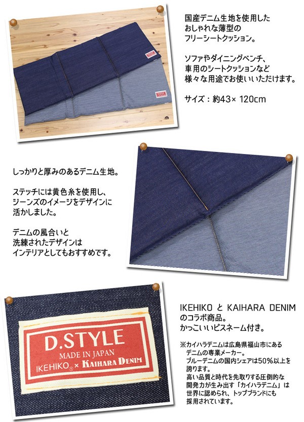 【商品名】クッション 椅子用 フリーシート 国産 デニム ストライプ柄 『レオン』 約43×120cm