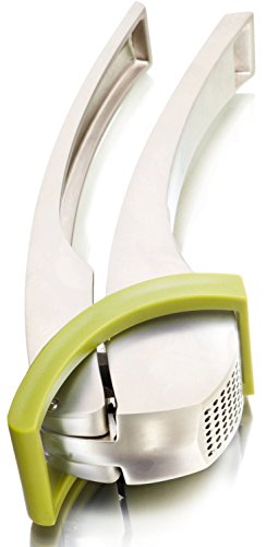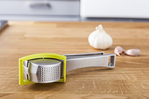 -. Feature : Constructed using high-quality, robust, rust-resistant aluminium / Highly efficient pressing mechanism for both unpeeled and peeled garlic cloves / Crushing holes are cleaned by adjacent pins during pressing process / Features a unique scraper for extracting the garlic / Dishwasher safe