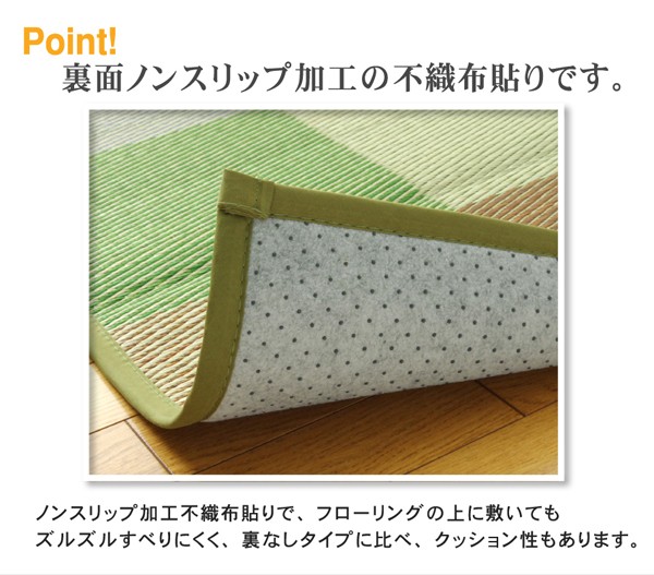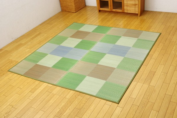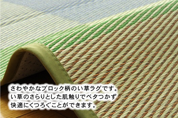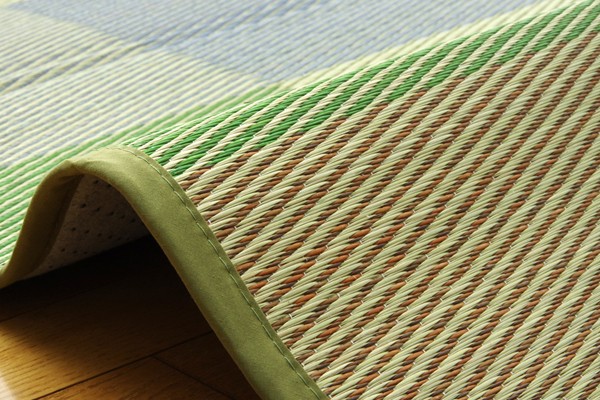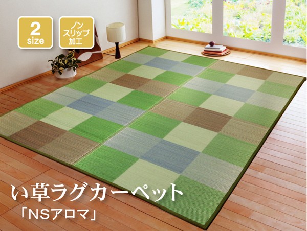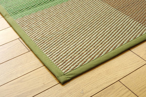 【商品名】シンプル格子柄 い草ラグカーペット 『NSアロマ』 グリーン 191×250cm (裏:滑りにくい加工)