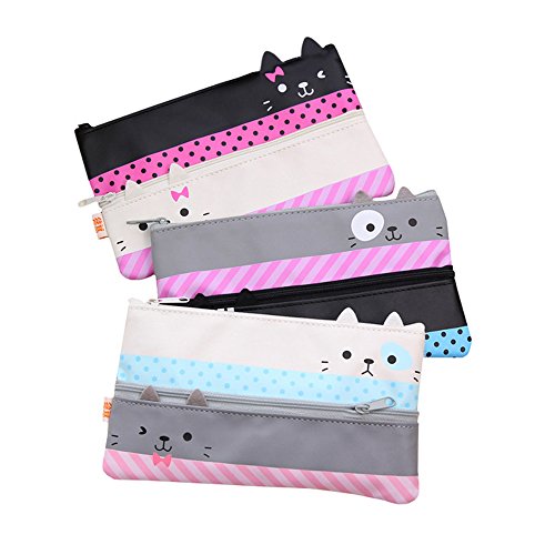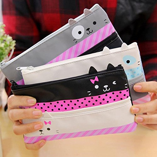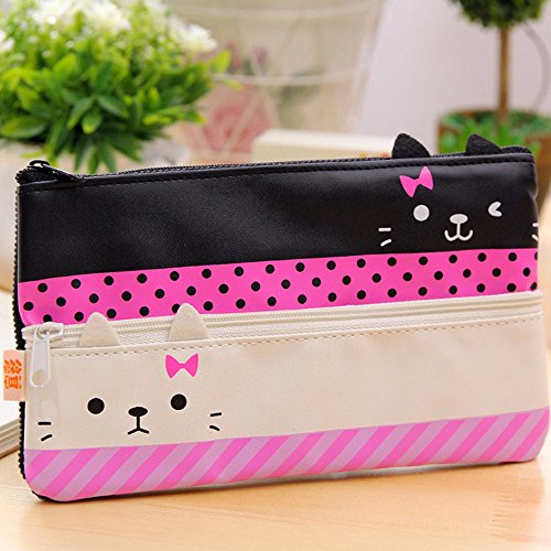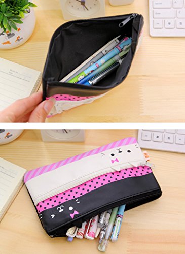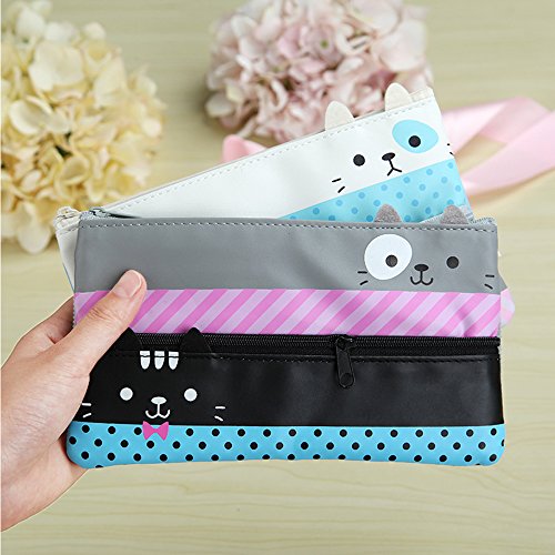 Cat Pencil Case Convenient and Practical Pen Bag Canvas Pencil case Gift Sets (White+Black)