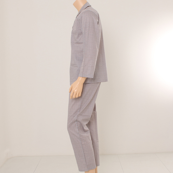 70수 면 주자 소재로 은은한 광택감과 부드러운 터치감 을 느낄수 있는 고급 소재에 기하학 헤링본 패턴이 트렌 디한 칼라감으로 세련된 분위기를 연출한 파자마세트입니다.