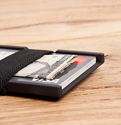 - Feature : Securely holds 2-6 cards. RFID protection. Made in USA. / Durability. With a back wall thickness of 0.065", It will not bend. This provides the optimum strength vs. slimness ratio / Cash and business cards can be easily strapped on the back or front for easy access / The aluminum wallet weighs in at 1.3 oz. making it ultra light / The slim design is barely noticeable in front or rear pocket