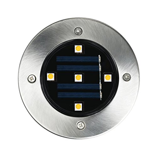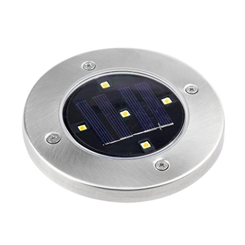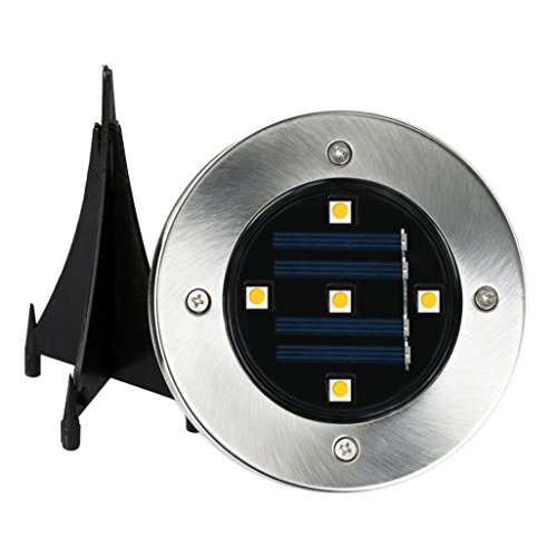▶ Feature: ▶ Upgraded LED Buried lamps for Garden Lawn Yard ▶ Made of durable and stylish stainless steel ▶ Solar powered ground light ▶ Comes with auto-on dusk to dawn sensor ▶ No wiring required and safe to use around children and pets ▶ A 600ma Ni-MH rechargeable battery included ▶ Ideal for areas where conventional electrical supply is not available ▶ ▶ Speification : ▶ Material: Stainless steel and ABS ▶ Solar panel power: 2V/100mA ▶ Lamp type: LED ▶ Light colour: as picture ▶ Charging time: ≥ 8 hours ▶ Working time: full charged can be lighting about 8 hours ▶ Waterproof rating: IP65 ▶ Battery required: 1 x 1.2V600mAh Ni-MH AAA rechargeable battery (included) ▶ Product Colour: Silver ▶ ▶ Included:1 X 5 LED Solar Powered Ground Light 0