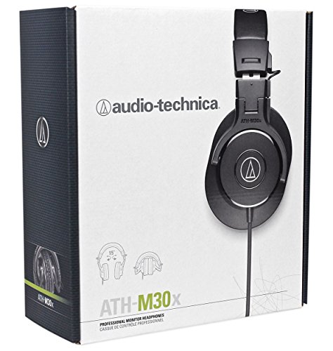 -. Feature : Designed for video production and broadcast (ENG/EFP) audio acquisition. Short length (11") ensures mic stays out of the shot -- even when used with compact digital cameras. Smooth, natural-sounding on-axis audio quality. Provides the narrow acceptance angle desirable for long-distance sound pickup. Excellent sound rejection from the sides and rear of mic. / Switchable low-frequency roll-off. Operates on battery or phantom power. RoHS compliant-free from all substances specified in the EU directive on hazardous substances. Audio Technica ATH-M30X Professional Studio Monitor Collapsible Headphones. Advanced build quality and engineering. 40 mm drivers with rare earth magnets and copper-clad aluminum wire voice coils. Tuned for enhanced detail, with excellent mid-range definition. / Circumaural design contours around the ears for excellent sound isolation in loud environments. Convenient single-side cable exit. Collapsible for space-saving portability. Designed to excel for studio tracking, mixing and field recording. Type: Closed-back dynamic. Driver Diameter: 40 mm. Magnet: Neodymium. / Voice Coil: Copper-clad aluminum wire. Frequency Response: 15 - 22,000 Hz. Maximum Input Power: 1,300 mW at 1 kHz. Sensitivity: 96 dB Impedance: 47 ohms. Weight: 220 g (7.8 oz), without cable and connector / Cable: 3.0 m (9.8'), straight, left-side exit. Accessories Included: Protective carrying pouch, 6.3 mm (1/4") screw-on adapter