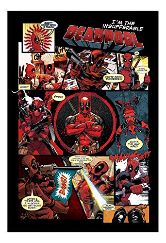 -. Title : Deadpool Comic Panels Poster Magnetic Notice Board Black Framed - 96.5 x 66 cms (Approx 38 x 26 inches)