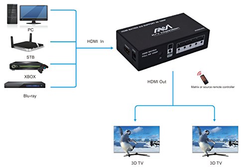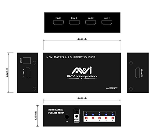 AVI 4x2 HDMI Matrix support 3D 1080P any 4 HDMI inputs to any 2 HDMI standard outputs (1080P)