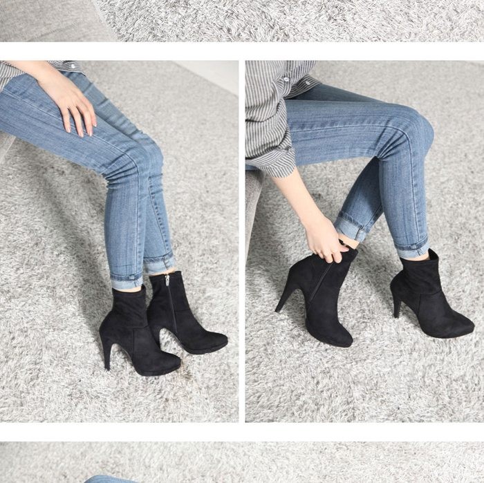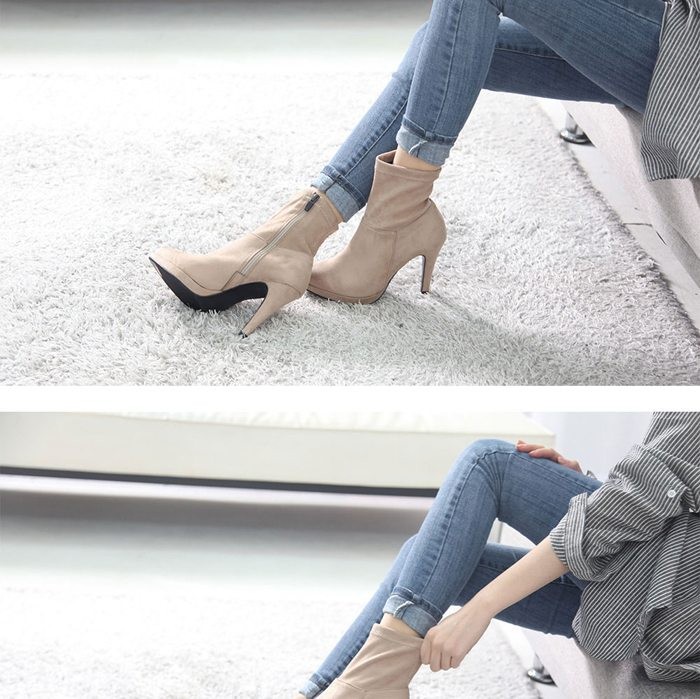 商品名:ストレッチブーツ レディース ピンヒール ピンヒール スエード調 2017 秋冬 ファッション 靴 婦人靴
