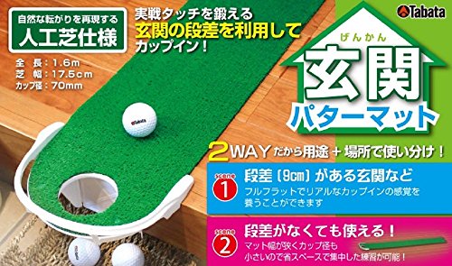 登り傾斜がないフラットでカップインできるパターマット ・実際にグリーンに近い環境を再現するため玄関や階段などの段差を利用してフルフラットでのカップインを実現 ・省スペース収納が可能なコンパクトサイズパターマット ・カップ径70mm ●芝長1.6m、芝幅17.5cm ●人工芝 ※段差がなくても使用できます。