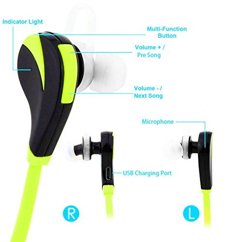 Arteck Wireless Bluetooth Sport Headphones w/Mic for Running Sports Earbuds with 5-Hour Playing Battery for iPhone iPod Android Smart Phones-Green