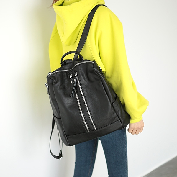 |  편안하게 착용하기 좋은 백팩 아이템을 소개할게요 캐쥬얼하면서 세련된 무드로 착용가능하신 아이템이에요! 중앙에 지퍼 디테일로 밋밋하지 않고 세련된 무드를 연출해주고요~ 적당한 사이즈로 편안하게 들고다니기 좋은 아이템입니다 또한 다양한 수납공간이 있어서 간단하게 들고다니기 좋으며 지퍼디테일이 있어 실용성까지 좋은 아이템이랍니다 상세컷 확인 후 굿 초이스 해주세요~!       | COLOR | 블랙 | | 제품 색상은 모니터에 따라 실제 색상과 차이가 있을 수 있습니다. | | | | FABRIC | 합성피혁 | | | | PRODUCT ION | 제조국 / 중국 | | 품질보증기준 / 소비자분쟁 해결기준에 따름 | | A/S 책임자 및 고객센터 / 감성가방 | | | | SIZE INFO | 사이즈는 측정 방법에 따라 1~2cm의 차이가 있을 수 있습니다. | | 스트랩 길이는 연결 고리를 제외한 길이이며, 최대 길이입니다. | | (단위:cm, g) | | 가로 길이 | 세로 길이 | 너비 | 손잡이 높이 | 스트랩 길이 | 무게 | | 34.5 | 35 | 14.5 | 5 | 58(조절o) | 1780 |  |