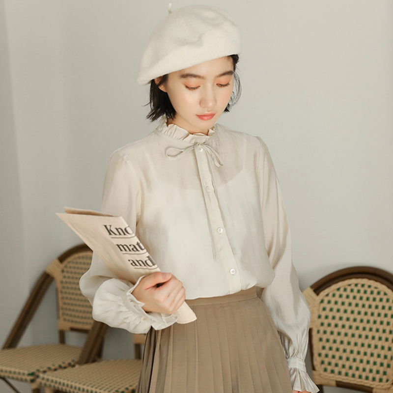 柔らかなシアーカラーで、優しい印象を与えるガーリーな雰囲気のブラウスです★