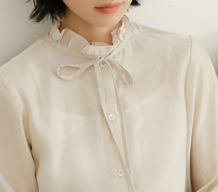 プチフリルをあしらったネック部分のタイリボンがさり気ないアクセントになっていてGOOD◎