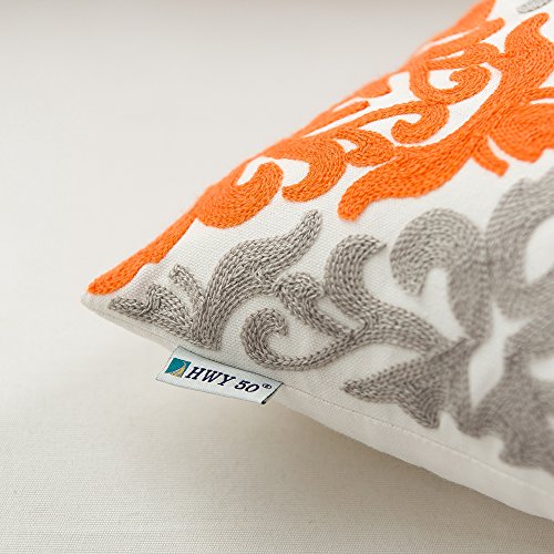HWY 50 Orange Couch Throw Pillow Covers 18 x 18 inch , 1 PC Cotton Canvas Embroidery Home Decorative Square Throw Pillows Cases For Sofa / Bed Euro Farmhouse Decor Protector Cushion Covers