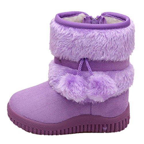 Toddler Baby Boy's Girl's Snow Boot Flat Pom Pom Winter Warm Shoes Ankle Booties (1-7 Years Kids)