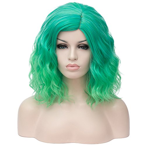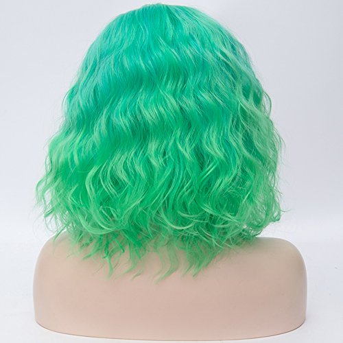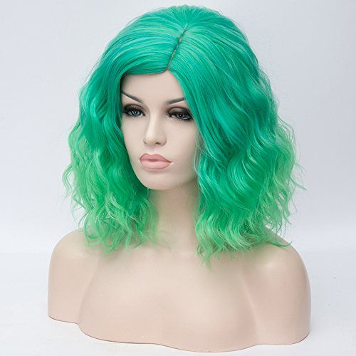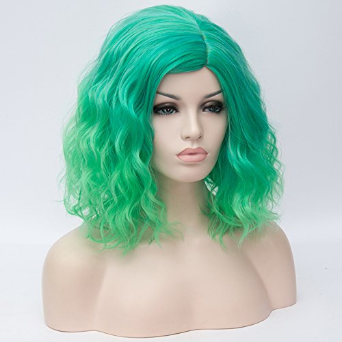 Short 18" Wavy Heat Resistant Side Part Lolita Fashion Harajuku Cosplay Wig + Wig Cap (Green)