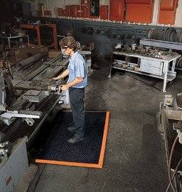 Product Description Many other safety mats have non - integral vinyl borders that can erode The borders on these safety mats are permanently affixed 7/8 in thick mat affords anti-fatigue benefits Large holes allow drainage , and mini diamond studs on top surface minimize slippage Border Color: Orange 0
