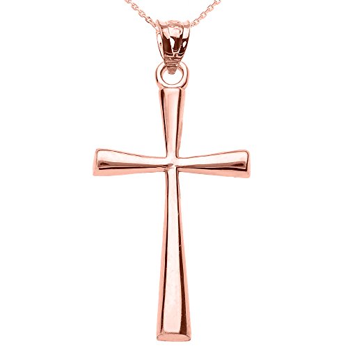-. Title : Solid 14k Rose Gold Simple Cross Pendant Necklace