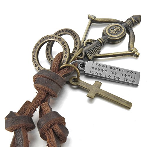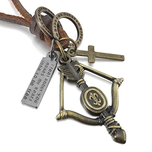 - Title : Men's Alloy Genuine Leather Pendant Necklace Silver Gold Brown Cross Bow Arrow Knight Fleur De Lis Feather Vintage Round Rings Biker Adjustable 16~26 Inch Chain