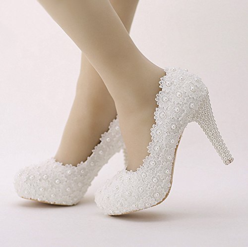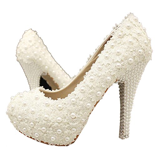 Getmorebeauty Women's Handmade Lace With Flower Pearls Dress High Heel