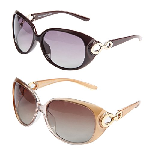 -. Feature : Plastic frames with light weight, high plasticity, produced by industrial mold, stable quality is a kind of environmental protection engineering plastics. / UV protection resin lens passed the Drop Ball Test and FDA certification with different colors restore original true colors of the world, increase clarity and give you a real feeling to the world. / high elastic sP.R.Ing leg can prevent it clip your face, solid high quality hinge tested 100 thousand times, smooth finish uneasy to fall off, tight screw, with medical silica gel allergy free and skid resistance nose pads. / Color: 3 pairs(purplish red and champagne, champagne and coffee, black and tea), Size: width:62mm, bridge: 16mm, temple: 125mm, height:47mm / Package: 2 pair of sunglasses, 2 cleaning cloth, 1 manual, 2 case