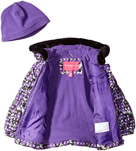 London Fog Little Girls' Classic Heavyweight Puffer Jacket with Gingham Floral Print, Purple Floral, 5/6