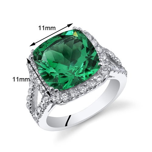 -. Title : 6.50 Carats Cushion Cut Simulated Emerald Ring Sterling Silver Sizes 5 to 9