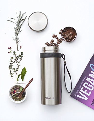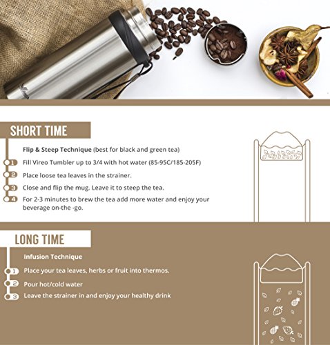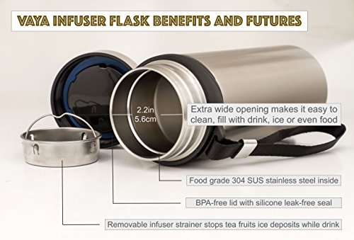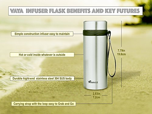 VAYA Stainless Steel Vacuum Insulated Water bottle Tea Infuser You won't find an Eco-Friendly flask with a better design anywhere else online. Treat yourself or buy the gift (Christmas Valentine's Day Birthday, business, Promotional present) a product that actually WORKS! Our commuters tumbler is your ticket to a more pleasing lifestyle!