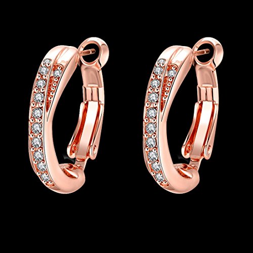 Souarts Damen Ohrringe rose vergoldet mit Kunstliche Diamanten Kreis Ohrsteck 2.2cm
