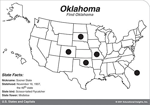 Cards quiz students on a state's location on one side, and its capital on the other. Cards also teach state birds, flowers, nicknames, and more.