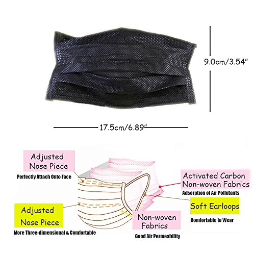 -. Feature : Built-in nose piece molds to the face.Size:175mm/6.89inch in length. / High quality non-voven fabric,soft and comfortable. / Comfortable elastic earloop / Filters dust, pollen, bacteria / Great for medical, dental, nail salons, occupational, construction, paint, allergies, gardening etc