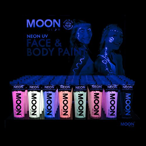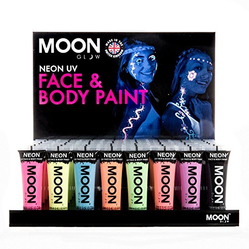 Moon Glow - Pastel Neon UV Face & Body Paint - 0.42oz Display Case of 48 tubes - includes acrylic display stand