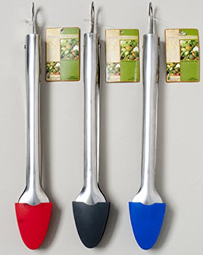 3 Stainless Steel Tongs with Red, Gray, and Blue Silicone Tips 12" - Locking Tong