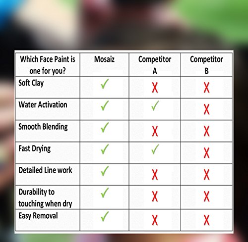 - NON-TOXIC. WATER-BASED Face Paint Kit. Kid Safe Hypoallergic, skin friendly, food grade pigmented and FDA Compliant Ingredients. Won't itch, crack or irritate skins. Colors dry fast and comes off easily with mild soap and warm water.