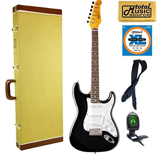 Studio : Oscar Schmidt Publisher : Oscar Schmidt Product Description Features: Model: OS-300 BK Double cutaway body Solid Maple Body White pickguard Rosewood fingerboard Maple neck Nut With: 1-5/8 Standard tremolo bridge with Trem Bar Adjustable truss rod Dot inlays 3 single coil pickups 1 volume, 2 tone controls 5-way pickup selector Chrome diecast tuners and hardware Gloss finish 0